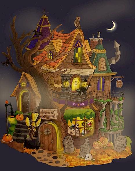 or maybe a witch's one-stop shop for all her potion needs, exploring architecture.